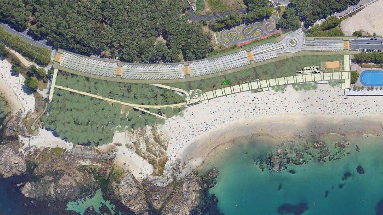 De este modo, en los 450 metros entre A Fonte y la pista de patinaje, se retranqueará el muro del paseo unos 10 metros y se plantarán pinos en la parte de la acera contra el monte. En la que da a la playa se regularizará la geometría para que tenga un ancho constante de 6 metros y se sustituirá el pavimento actual por uno drenante. Todo ello para que suponga una salida natural y la continuación del nuevo paseo.