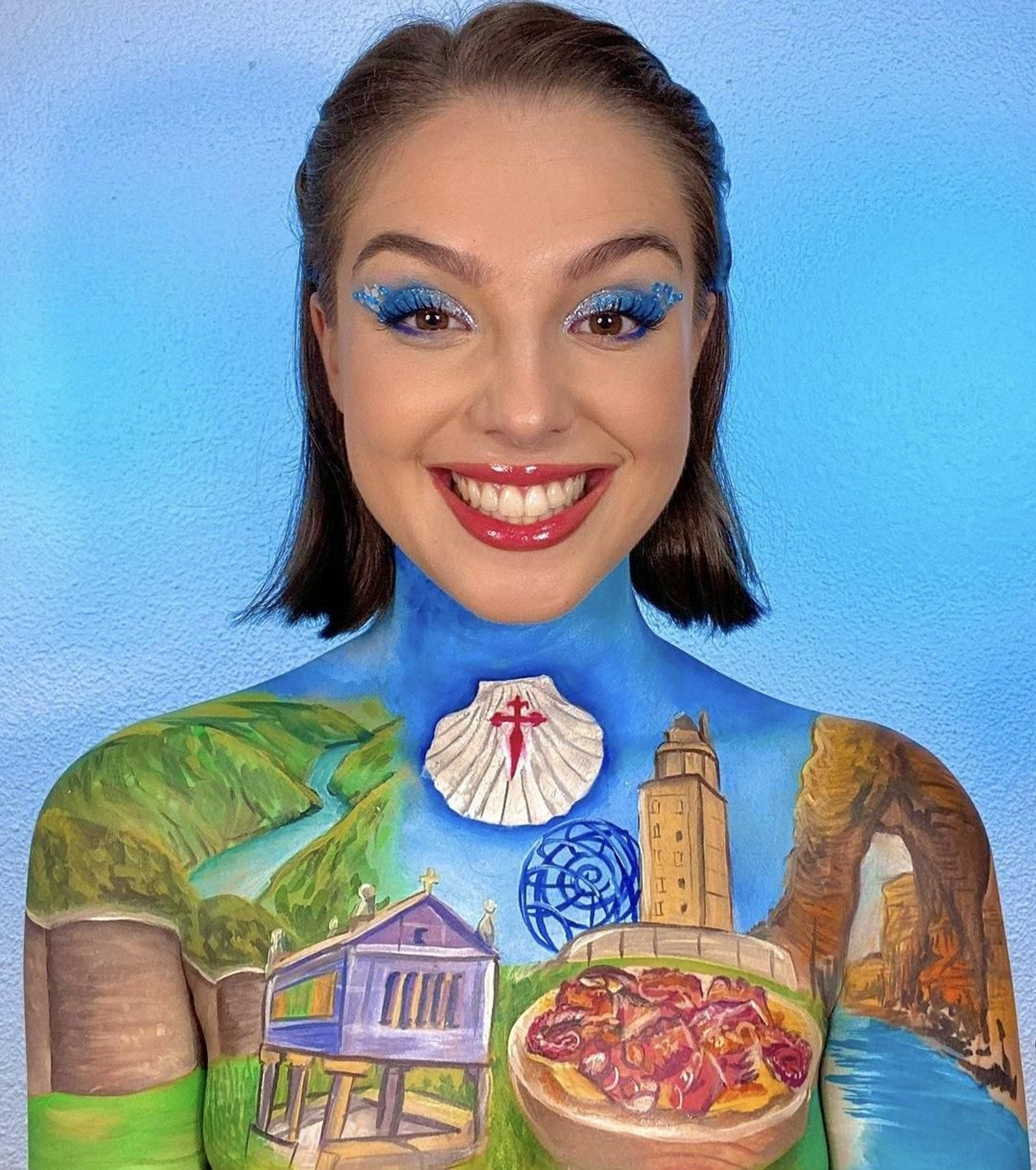 Galicia se cuela en el último vídeo viral en internet. Les hablo de la obra de arte creada por la tiktoker Kalon Bay con motivo del Día de la Hispanidad. Ahí les muestro el homenaje a tierras gallegas con un trabajadísimo maquillaje sobre la piel sobre el que se reconoce la caracola de Cabo Home, el hórreo de Combarro o la tapa de pulpo tan típica de la comunidad. Al ritmo de la música de Los Piratas, la artista murciana sorprendió con esta original creación con todas las comunidades autónomas.