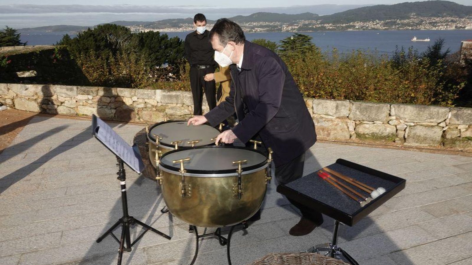 Esta semana visitó Vigo el secretario general de Infraestructuras del Gobierno de España, Sergio Vázquez, que es de Lugo, así que conoce bien Galicia y especialmente Vigo. De hecho en su comparecencia ante los medios se notó que conocía bien la ciudad por las indicaciones que hizo. Sergio Vázquez se reunió con Abel Caballero y visitó las obras de rehabilitación de la Muralla de O Castro, cofinanciadas por el Ministerio de Transportes y Agenda Urbana al que él mismo pertenece. El gran descubrimiento de la visita fueron dos timbales datados en 1912 y que fueron de la extinta Banda Municipal. Han sido recuperados y el percusionista de la Orquesta Clásica Andrés Bernárdez ofreció un pequeño concierto. El regidor no pudo evitar tocar los timbales una vez que terminó el concierto.