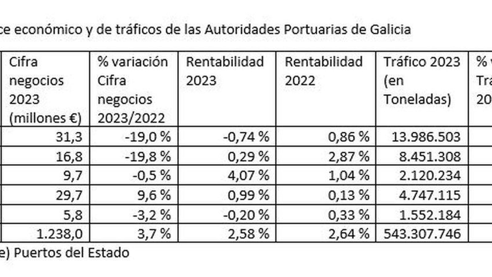 Dos son las conclusiones que extrae Fernando González Laxe a nivel general. Por un lado, que los puertos de interés general superaron en 2023 la cifra de negocios del año anterior en un 3,7%, alcanzando los 1.238 millones de euros, un resultado histórico en un periodo de retroceso de tráficos, en un 3,28%, y en un contexto de elevados riesgos e incertidumbres derivados de situaciones geopolíticas complejas.