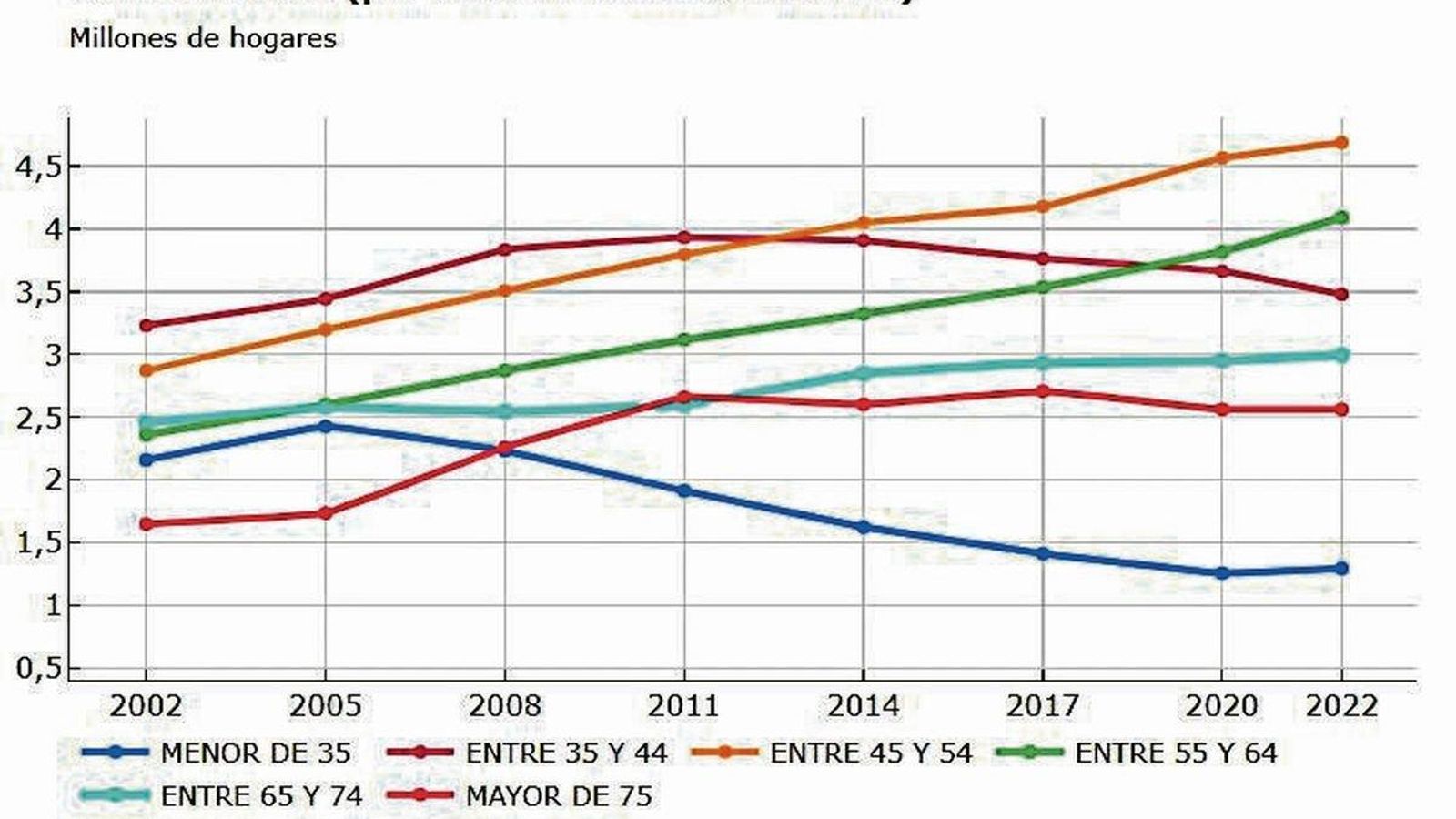 Es por esta razón que el número de hogares en los que el cabeza de familia tiene 35 años o menos se ha reducido a la mitad en apenas dos décadas, de acuerdo con el estudio del Banco de España. Si bien en 2005 estos sumaban 2,4 millones en toda España, los últimos registros son de 1,3. Además, el IGE apunta que, en Vigo y provincia, la media de edad de los hogares unipersonales es de casi 62 años (61,89) y solamente el 5,8% de estos están compuestos por personas menores de 35.