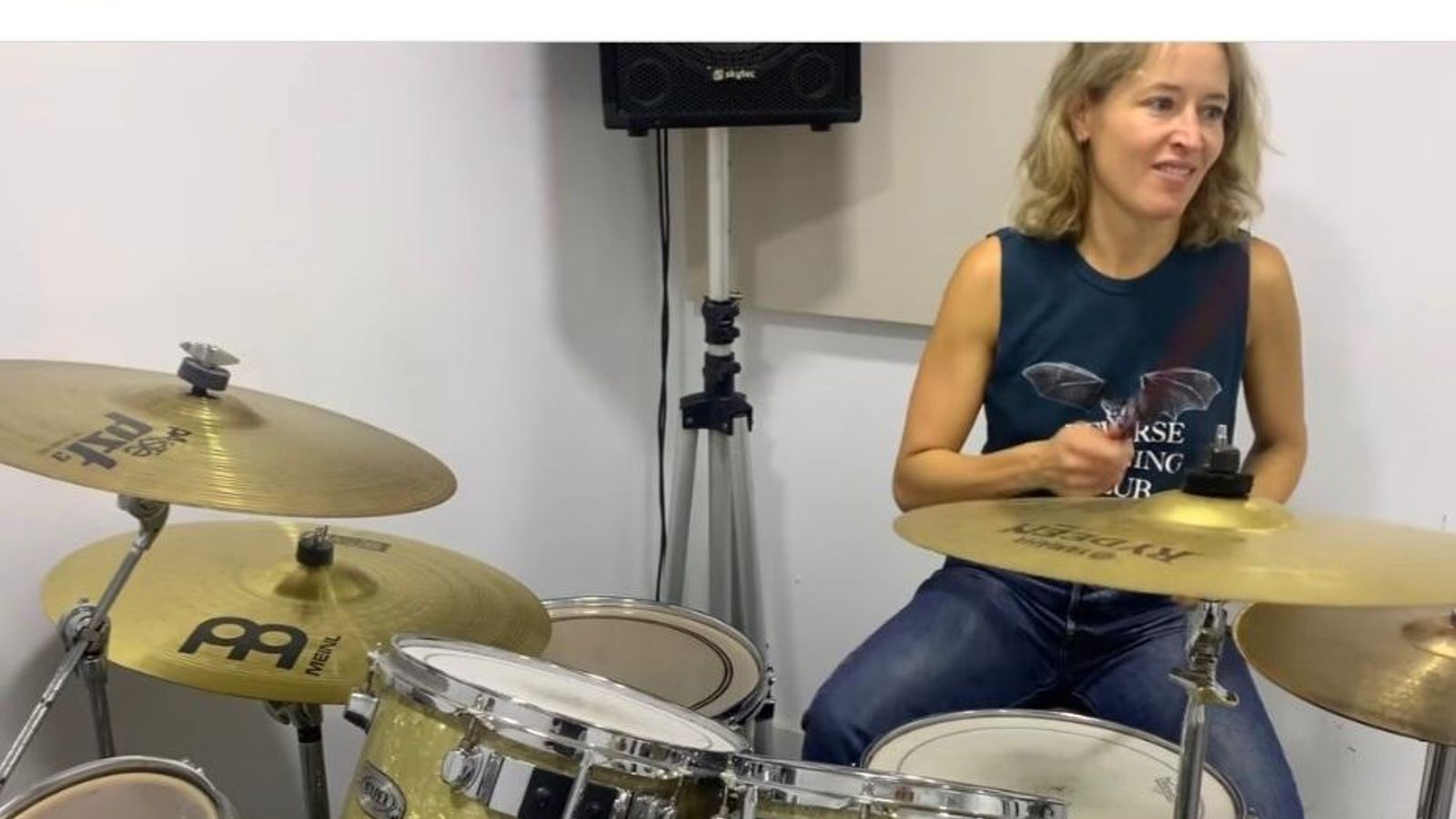 Nunca es tarde para cumplir sueños y eso lo sabe bien Marta Larralde. La actriz viguesa se quitó una espinita que tenía clavada y está probando con la batería. Su profesor le dijo que tenía que fardar un poco y tengo que decirles que se maneja la mar de bien.